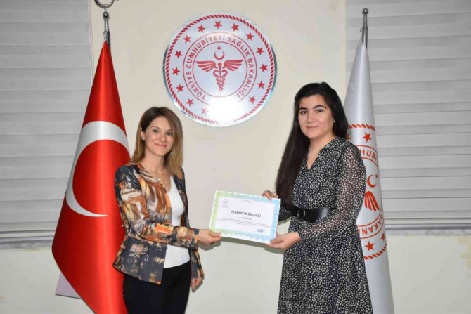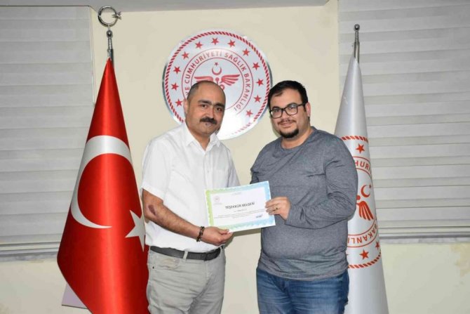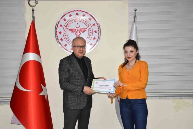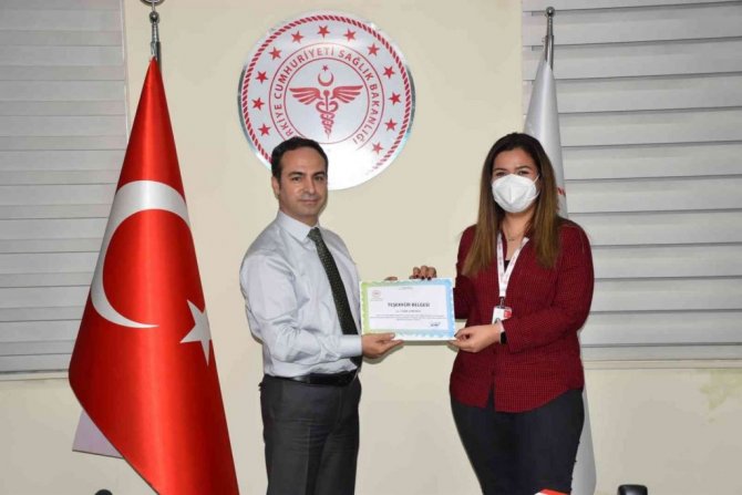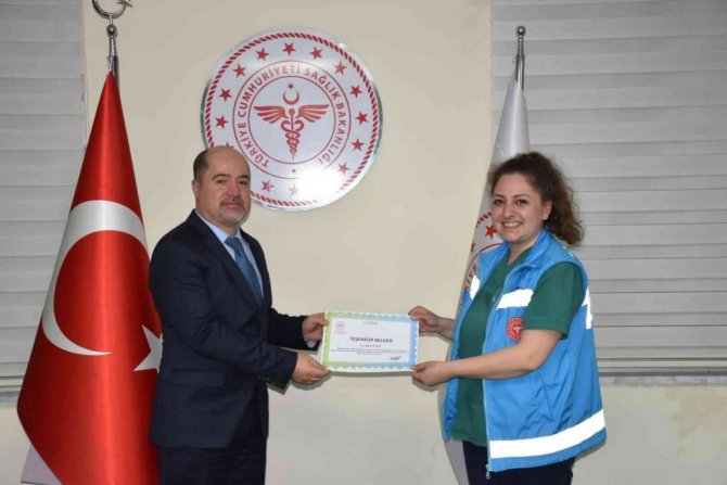 Toplantı sonrasında evde sağlık hizmetleri çalışanlarına özverili çalışmalarından dolayı teşekkür belgesi takdim edildi.