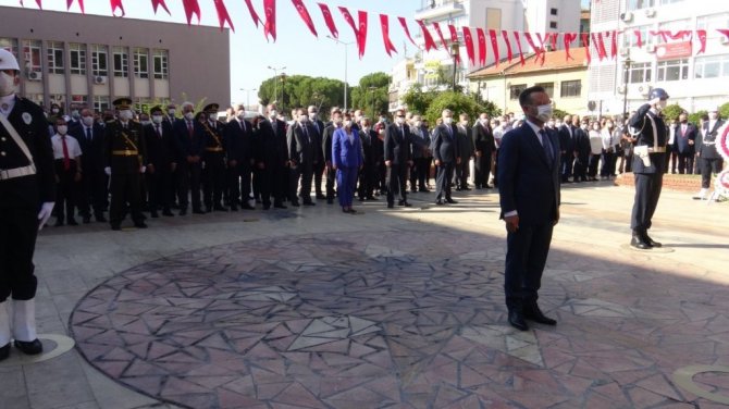 Aydın Valiliği koordinasyonunda düzenlenen programda Aydın Valiliği, Garnizon Komutanlığı ve Aydın Büyükşehir Belediyesi tarafından valilik önündeki Atatürk Anıtına çelenk sunuldu. Saygı duruşu ve İstiklal Marşı'nın okunmasıyla başlayan anma töreni, kutlama mesajlarının okunmasının ardından günün anlam ve önemine dair konuşma ile devam etti.