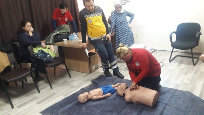 İlk yardım eğitmenleri ATT Hatice Meral, ATT Ramazan Koyuncu ve Tıbbi Sekreter Hüseyin Sinan tarafından verilen eğitimde, ’Temel İlkyardım Eğitimi’ kapsamında personel eğitime tabi tutuldu. Eğitime katılan personele, genel ilkyardım bilgileri, hasta ve yaralının, olay yerinin değerlendirilmesi, temel yaşam desteği, kanamalarda, yaralanmalarda, yanık, donma ve sıcak çarpmalarında, kırık, çıkık ve burkulmalarda, bilinç bozukluklarında, zehirlenmelerde, hayvan ısırmalarında, göz, kulak ve burna yabancı cisim kaçmasında, boğulmalarda ilkyardım teknik ve uygulamaları ile hasta, yaralı taşıma teknikleri anlatıldı.