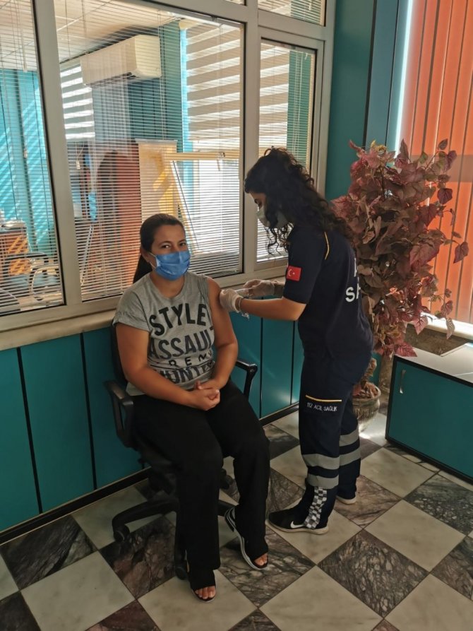 Aydın'da Korona virüs salgını ile mücadele kapsamında başlatılan aşı seferberliği kurumlarda da devam ediyor.