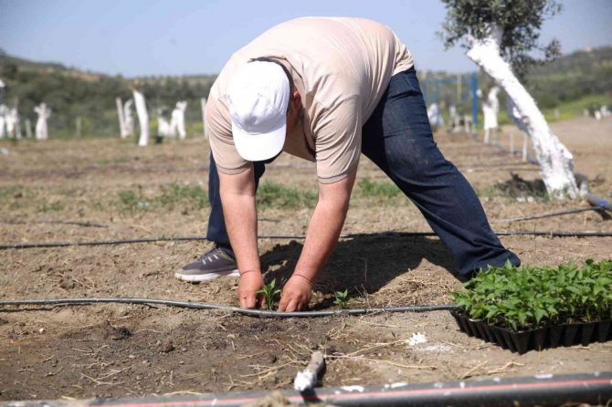 Aydın Büyükşehir Belediye Başkan Özlem Çerçioğlu'nun Ata Tohumları Projesi her geçen gün büyüyor. Kuloğulları Mahallesi Muhtarı Dursun Ertürk de çocuklar için bu sebzeleri yetiştirmeye başladı.