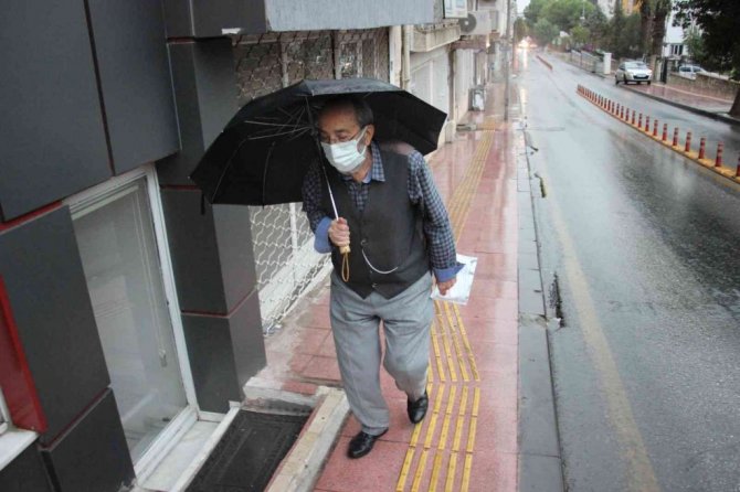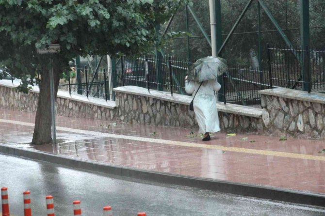 Aydın'da kurak geçen yaz mevsiminin ardından beklenen yağış etkili olurken, hazırlıksız yakalanan vatandaşlar ıslanmaktan kurtulamadı.