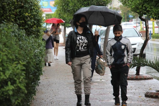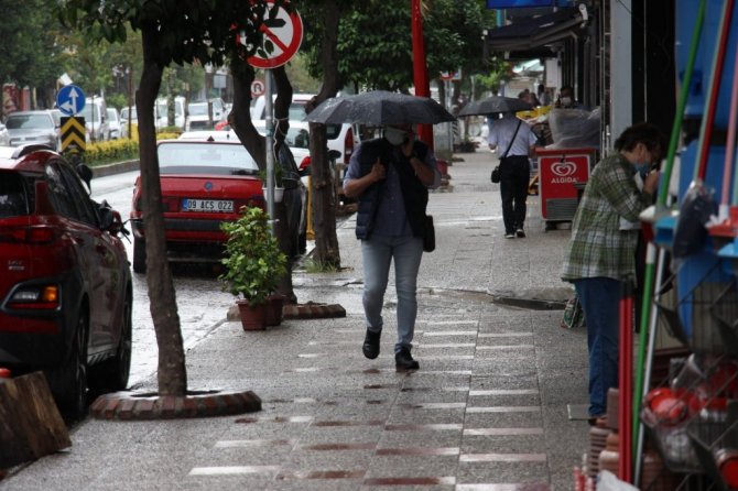 Aydın'da uzun süredir etkili olan sıcak ve güneşli hava yerini yağışlı havaya bıraktı. Yağışla birlikte hava sıcaklıkları da 4-5 derece düştü. Sabah saatlerinden itibaren etkisini gösteren yağışa karşı kimi vatandaşlar tedbiri elden bırakmayarak şemsiyeleri ile birlikte evden çıkarken, hazırlıksız yakalananlar da kendilerini ceketleri ile korumaya çalıştı. Yağışla birlikte cadde ve sokaklarda küçük su birikintileri oluşurken, yaz ayları başında yapılan kuraklık açıklamalarına karşılık yağan yağmur vatandaşları bir nebze olsun sevindirdi. Meteoroloji 2. Bölge Müdürlüğü verilerine göre Aydın'da havanın, bugün gök gürültülü sağanak yağışlı 27 derece, 22 Mayıs Cumartesi az bulutlu rüzgarlı 29 derece, 23 Mayıs Pazar az bulutlu 34 derece olması bekleniyor. Aydın'da önümüzdeki hafta başından itibaren ise sıcaklık değerlerinin mevsim normalleri üstüne çıkacağı öğrenildi.