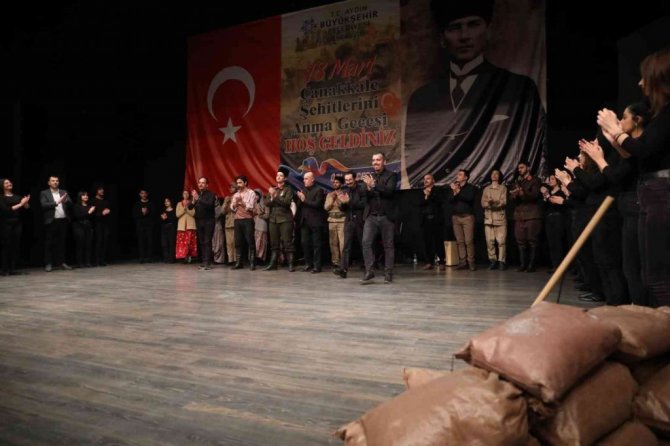 Çanakkale Savaşı'nda yaşanan kahramanlıkları ve tarihsel olayları izleyicilere hissettiren ve etkileyici performanslar sergileyen oyuncular, "Asker Uğurlama", "Nusret Mayın Gemisi", "Seyit Onbaşı", "Asker Mektupları" ve "Mustafa Kemal Atatürk'ün Seslenişi" gibi birçok önemli olayı sahnelerinde canlandırdılar. Etkinlikte ayrıca, "Çanakkale Türküsü", "Selanik Türküsü" ve "Zafer Marşı" eserleri de seslendirildi. Anma gecesine yoğun ilgi gösteren vatandaşlar, Çanakkale ruhunu yeniden yaşatan bir etkinliğe imza atıldığını belirterek Aydın Büyükşehir Belediye Başkanı Özlem Çerçioğlu'na teşekkür etti.