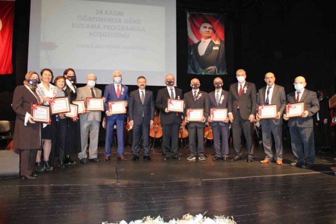 Ülke genelinde olduğu gibi Aydın'da da 24 Kasım Öğretmenler Günü kapsamında kutlama töreni gerçekleştirildi. Aydın Valiliği önündeki Atatürk Anıtı'na Aydın İl Milli Eğitim Müdürü Seyfullah Okumuş tarafından çelenk sunumu ile başlayan tören, Aydın İl Kültür Merkezi Hidayet Sayın Konferans Salonu'nda devam etti. Saygı duruşu ve İstiklal Marşı'nın okunmasıyla başlayan törende stajyerliği biten öğretmenler için yemin töreni gerçekleştirildi. Yeminlerini eden öğretmenler mesleklerine ilk adımı atarken, öğretmenlik mesleğinde uzun süre görev almış ve emekli olmuş öğretmenlere ise Aydın Valisi Hüseyin Aksoy tarafından "Hizmet Şeref Belgesi" verildi.
