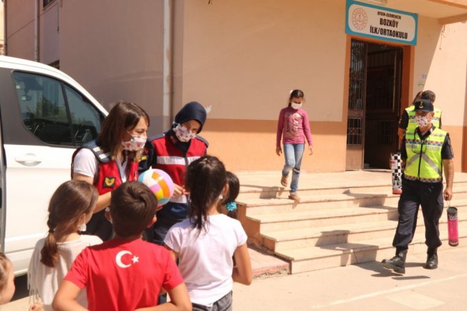 Yeni eğitim ve öğretim döneminin başlamasıyla birlikte, çocuk ve gençlerin suça sürüklenmesinin önlenmesi, zararlı alışkanlıklardan korunması, eğitim ve öğretimin güvenli bir şekilde sürdürülebilmesi için "Güvenli Okul, Güvenli Gelecek" projesi kapsamında Aydın İl Jandarma Komutanlığı ekipleri denetim gerçekleştirdi. Aydın İl Jandarma Komutanlığı'nda görevli "Aile İçi Şiddetle Mücadele ve Çocuk Kısım Amirliği" personeli ve diğer ekipler ile okulların çevresi ve servis araçlarının denetlendiği faaliyette jandarma ekipleri tarafından, öğrencilere suçtan korunma ve güvenlik konularında bilgiler verilerek, okulda bulunan öğrencilere balon, kitap, çeşitli kırtasiye malzemeleri, jandarma çocuk dergisi ve satranç takımı hediye edildi.