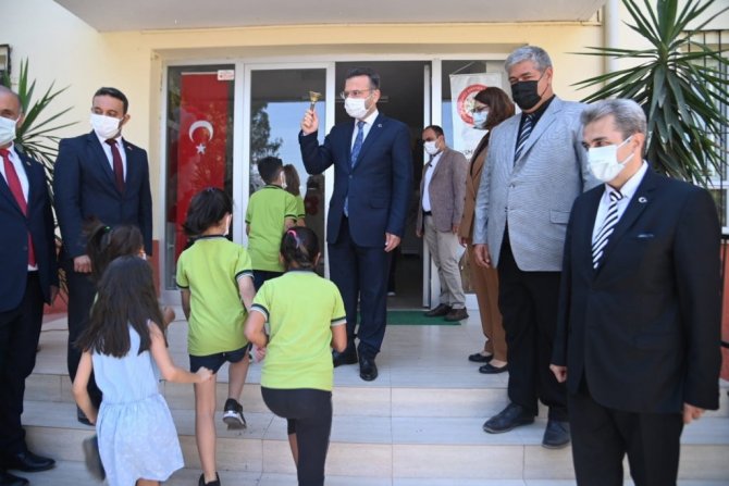 Yaklaşık bir buçuk yıl aradan sonra Aydın'da ilk ders zili çaldı, il genelindeki 177 bin 490 öğrenci ders başı yaptı. Yeni eğitim yılı açılış programına katılan Aydın Valisi Hüseyin Aksoy ise ilk ders zilini çaldı.