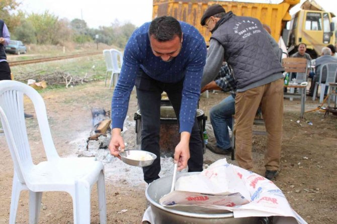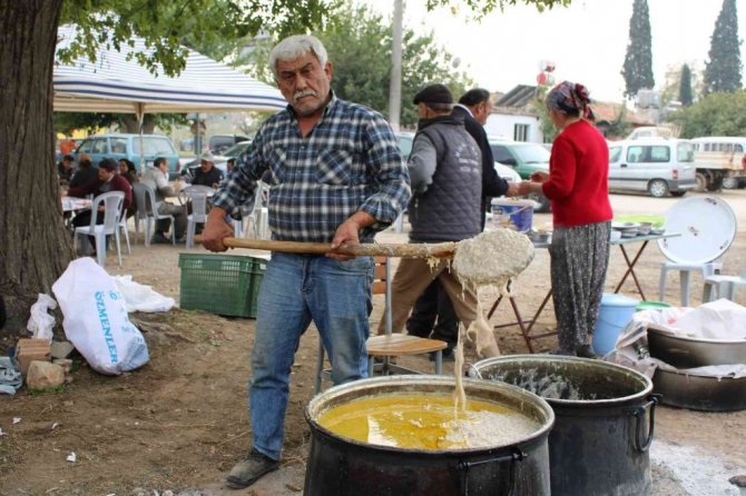 Aydınlı deveciler, güreş sezonu öncesi Köşk ilçesinde keşkek hayrı düzenledi.