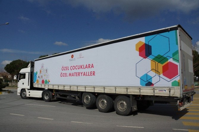 MEB Özel Eğitim ve Rehberlik Hizmetleri Genel Müdürlüğü tarafından özel olarak üretilen fiziksel, mekanik ve kimyasal açıdan öğrencilerin sağlığı için risk oluşturmayacak 100 farklı çeşitteki 143 bin materyal setinden 52 kolisi tırla Aydın’a geldi. Aydın Milli Eğitim Müdürlüğü deposuna indirilen malzemeler, oluşturulan komisyon tarafından il genelindeki özel eğitim öğrencilerine ulaştırılacak.
