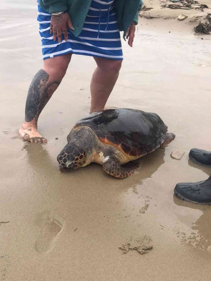 Bir başka olay da Kuşadası Kadınlar Denizi'nde meydana geldi. Kumsalda yürüyen yabancı turistler denizde bir kaplumbağayı görünce, kıyıya çekerek sahildeki bir restorana haber verdi. Restoran yetkilisi durumu EKODOSD'a bildirdi. Kıyıya vuran deniz kapluumbağasını teslim alan EKODOSD Başkanı Bahattin Sürücü, konu ile ilgili açıklama yarak "Caretta caretta türü İribaşlı Deniz Kaplumbağası teslim alınarak gerekli incelemeleri yaptık. Kaplumbağanın daha önce paragat misinasında sağ yüzgecini kaybettiğini ve zamanla iyileşmiş olduğu gördük. Ancak bu sefer hedef dışı av olarak ağlara takılıp nefes almak için su yüzeyine çıkamadığından boğularak yaşamını kaybettiğini tespit ettik. Carettanın gerekli ölçümlemeleri yapılarak kayıt altına alındı. Doku ve keratin örnekleri alınarak, ADÜ Biyoloji Bölümü'ne, mikroplastik araştırmaları için Muğla Dalyan'da bulunan DEKAMER'e gönderilecek" dedi.