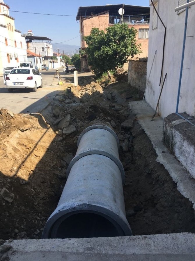 Büyük yatırımlarla kentin yağmur suyu altyapı ağını da genişleten ASKİ; Efeler'in Kuloğulları ve Gödrenli mahallelerinde yağmur suyu hattı yapım ve yenileme işlemlerine hızla devam ediyor.