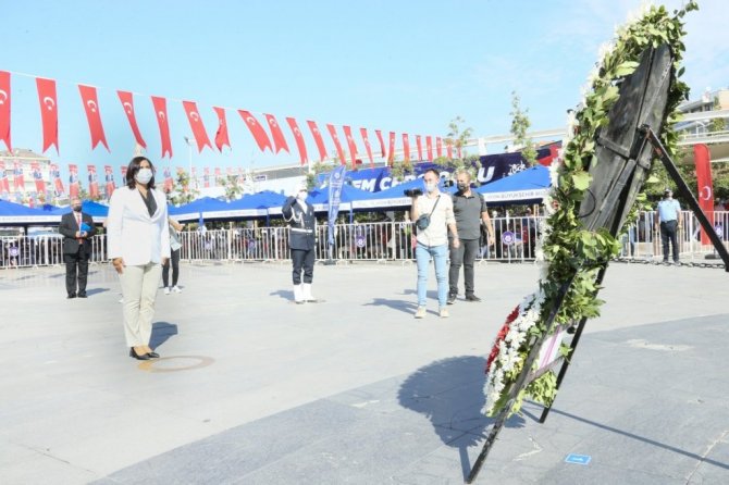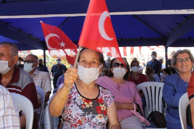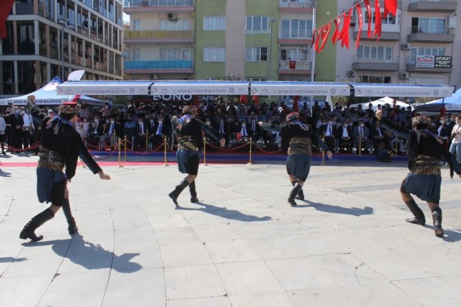 Aydın Büyükşehir Belediyesi Konservatuarı Mehteran Bando Takımı tarafından hazırlanan mini konserin ardından halk oyunları gösterisi büyük bir coşkuyla izlenirken, Başkan Çerçioğlu ve protokol üyeleri Kent Meydanı'nda bulunan şehitlik anıtlarına karanfil bıraktı.