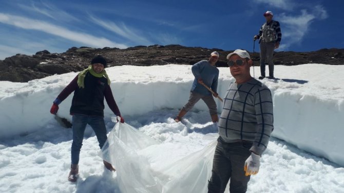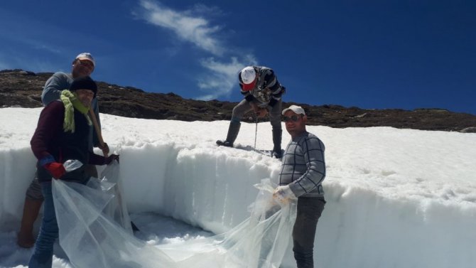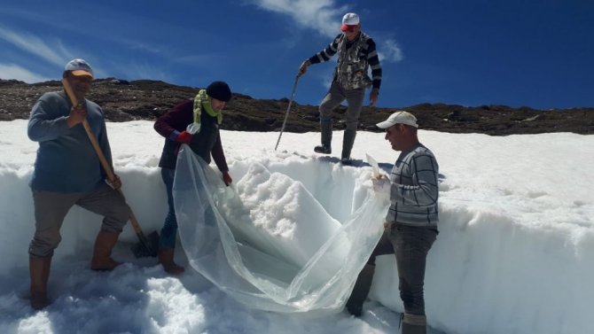 Aydın'da kavurucu sıcaklarda vatandaşların tercihleri arasında yer alan kar helvası için mesai başladı. 1800 rakımlı Madran Dağı'nın zirvesindeki kar kuyularından çıkarılan karlar çuvallanarak, soğuk hava depolarına taşınmaya başladı.
