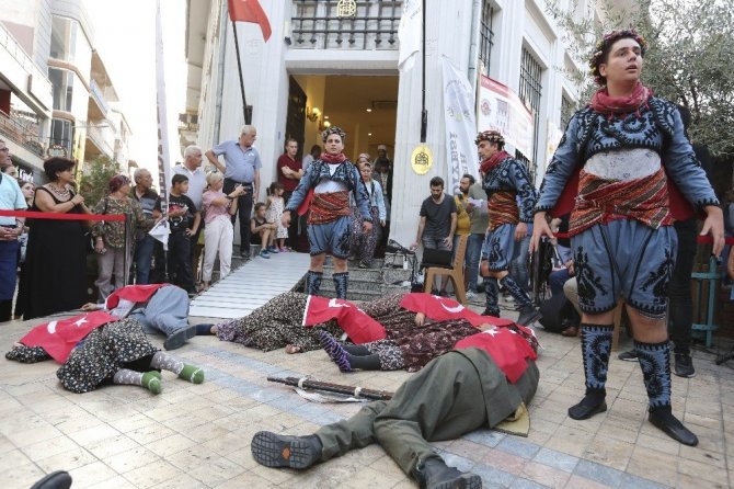 Daha sonra sokak tiyatrosu sergilendi. Serkan Fırtına’nın yazdığı, Tuncer Candan’ın yönettiği Reji Asistanlığını ise İbrahim Gergin’in yaptığı oyunu izleyenler duygulu anlar yaşadı. Kurtuluş Mücadelesi kahramanlarını anlatan sanatçılar büyük alkış aldı.