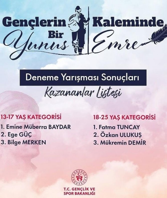 Aydınlı Emine Müberra Baydar, Gençlik ve Spor Bakanlığı tarafından düzenlenen "Gençlerin Kaleminde Bir Yunus Emre Deneme Yarışması'nda Türkiye birincisi oldu.