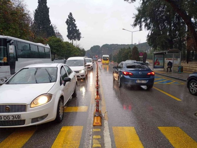 Aydın'ın Efeler ilçesinde dün akşam saatlerinde başlayan sağanak yağış sabah saatlerinde de devam etti. Sabah saatlerinde işe gitmek için evden çıkan bazı vatandaşlar yağmura hazırlıksız yakalanınca saçak altlarına saklanmaya çalışırken, yer yer araç sürücüleri trafikte zor duruma düştü. Yağışla birlikte bazı cadde ve sokaklarda ise küçük su birikintileri oluştu. Sağanak yağışın etkili olduğu bölgelerde ise belediye ekipleri vatandaşların mağdur olmaması adına çalışma başlattı. Yağışların aralıklarla akşam saatlerine kadar devam etmesi bekleniyor.