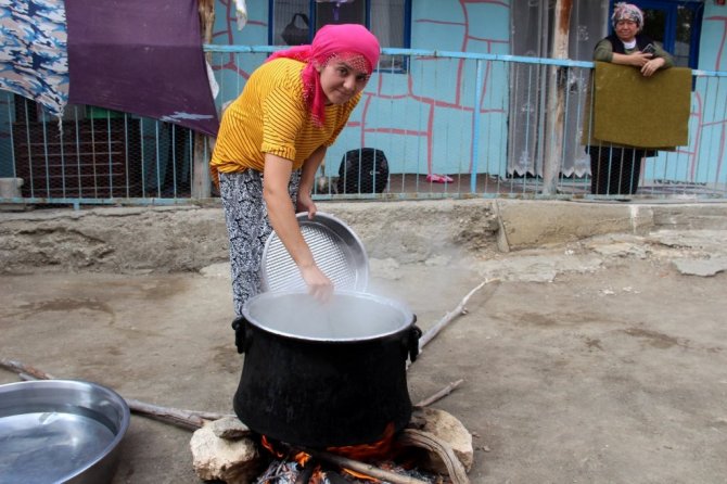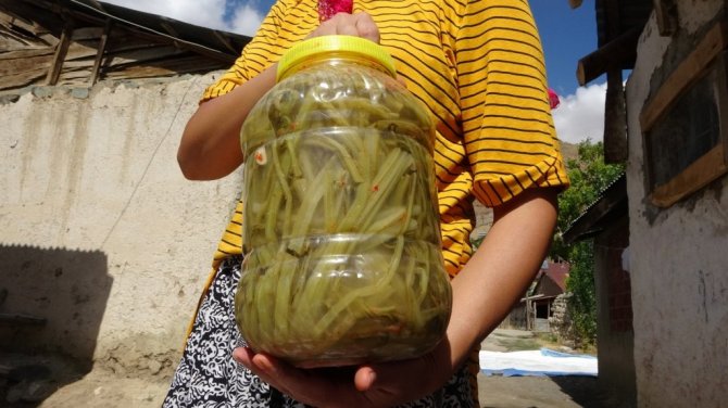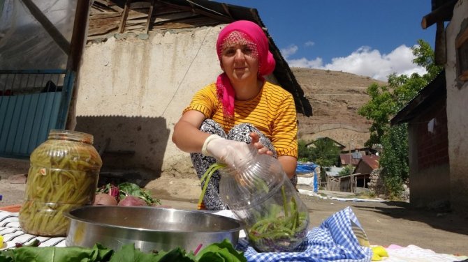 Pezik turşusu yapan Zübeyde Kılıç, "5'nci ayda pancar ekeriz. Güz gelince 8 ve 9'ncu aylarda turşularımızı kurarız. 2 çeşit pancarımız var onun köküyle de tekrar turşu kurarız. Bugünde pezik turşusu kurduk. Önce tarladan toplarız ayıklarız, soğuk suyla yıkayıp kazana koyup kaynatırız. Limon tuzu ve tuz atıp pişirdikten sonra tekrar soğuk suya koyup soğuturuz. Bu işlemden sonra bir kaba alıp pul biberini, tuzunu atıp bidona iade ederiz. 2-3 ay sonra turşu olur. 9'ncu ayda kurduğumuz turşu tekrar 5'nci aya kadar yeniyor. Hazır turşularda katkı var ama bu turşularda yok. Biz hiç ilaç falan koymayız. Bahçede hayvansal gübre kullanırız" dedi.