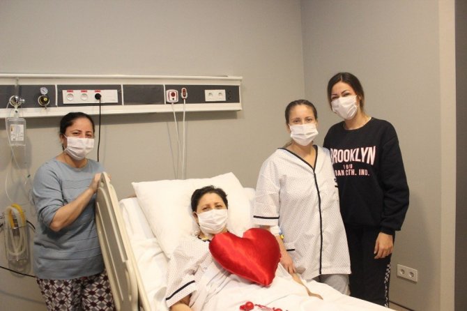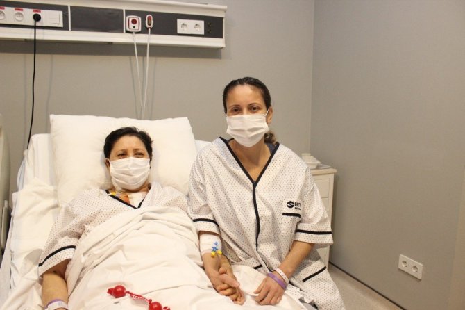 Çanakkale'de yaşayan 2 çocuk 4 torun sahibi 66 yaşındaki Ferdane Alır, 8 yıl önce rahim ameliyatı oldu. Ameliyattan 9 ay sonra yapılan tetkiklerde karaciğerde yağlanma olduğu belirlenen Alır, hiç aksatmadan kontrollerini yaptırdı. Geçen yıl Şubat ayında çekilen MR'da ise karaciğerinde bir kitle görüldü. Alkol kullanımına bağlı olmayan karaciğer yağlanmasının( NASH- Non Alkolik Steato Hepatit) siroza çevirdiği, bu zeminde de karaciğer kanseri geliştiği ortaya çıktı. Bunun üzerine İzmir'de bir üniversite hastanesine başvuran Alır, pandemi nedeniyle Haziran ayında tedaviye geldi. Girişimsel yöntemle Alır'ın karaciğerindeki kitle yakılırken sağlığına kavuşması için karaciğer nakli olması gerektiği söylendi. Geçtiğimiz Eylül ayında nakil için Kent Hastanesi'ne başvuran Alır'a yapılan tetkiklerde kızının verici olabileceği belirlenirken kalp ana damarlarından üçünde ciddi darlık saptandı. Kalp sağlığının karaciğer nakli için risk oluşturulacağı söylenen Alır, Çanakkale'de anjiyo yaptırmasına rağmen kalp damarlarındaki tıkanıklık açılamadı. Bunun üzerine tekrar İzmir'e Kent Hastanesi'ne gelen Alır'ın bypass olması gerektiği, ancak iki ameliyattan birinin önce diğerinin sonra yapılmasının hayati risk oluşturacağı belirtildi. Bunun üzerine karaciğer nakil ekibi ile kalp damar cerrahları hastayı birlikte değerlendirerek, aynı seansta önce bypass ardından nakil yapılmasına karar verdi. Ferdane Alır hekimlerin önerisini kabul ederek 14 Ocak günü ameliyat masasına yattı. 3'ü bypass toplam 9 saat süren operasyonun ardından Ferdane Anır için yeni bir hayat başladı.