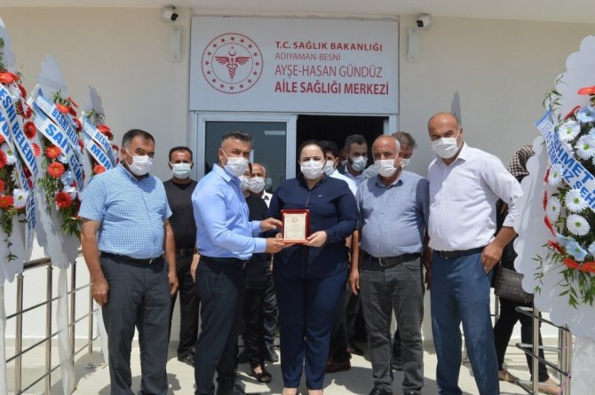 Açılışı yapılan aile sağlığı merkezinin yer tahsisini yapan Erdal Gündüz'e Besni Kaymakamı Nazlı Demir tarafından teşekkür plaketi verildi.