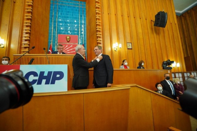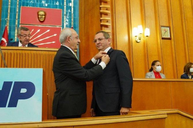 Yaklaşık bir yıldır, bağımsız olarak sürdürdüğü Belediye Başkanlığı görevini, Ayvalıklı vatandaşların istemleri doğrultusunda, siyasete atıldığı ilk parti olan Cumhuriyet Halk Partisi çatısı altında devam etme kararı alan Ayvalık Belediye Başkanı Mesut Ergin, TBMM'de, CHP grup toplantısında düzenlenen törenle, Genel Başkan Kemal Kılıçdaroğlu tarafından yakasına CHP rozeti takıldı.