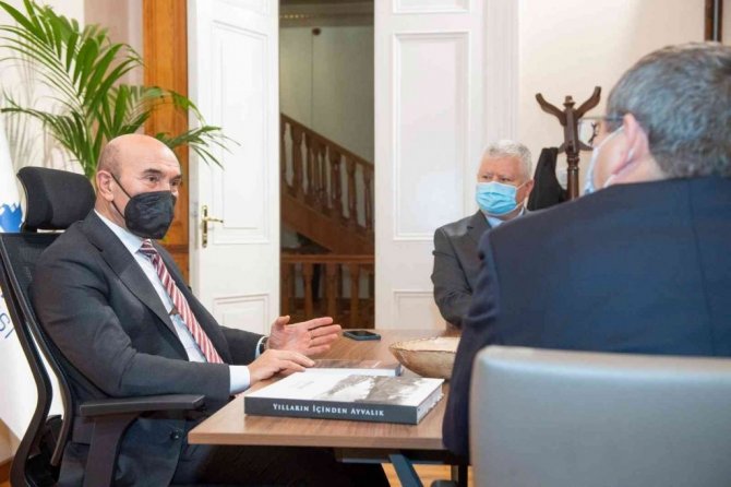 Ayvalık Belediye Başkanı Mesut Ergin, İzmir Büyükşehir Belediye Başkanı Tunç Soyer'i makamında ziyaret etti.