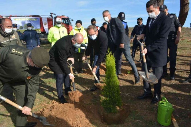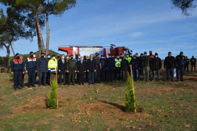 Balıkesir'in Ayvalık ilçesinde, Orman Genel Müdürlüğü tarafından 7 coğrafi bölgede yer alan 28 Orman Fidanlık Müdürlüğü'nde üretilen 84 milyon fidandan 500'ü toprakla buluşturuldu.