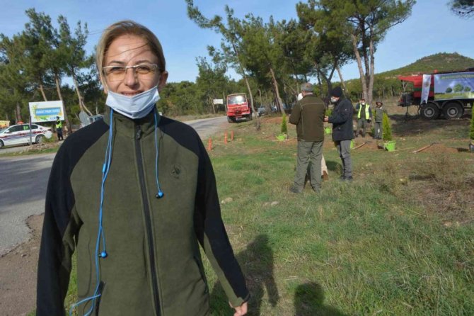 Ayvalık’ta 11 Kasım Milli Ağaçlandırma Günü kapsamında 500 fidan toprakla buluştu