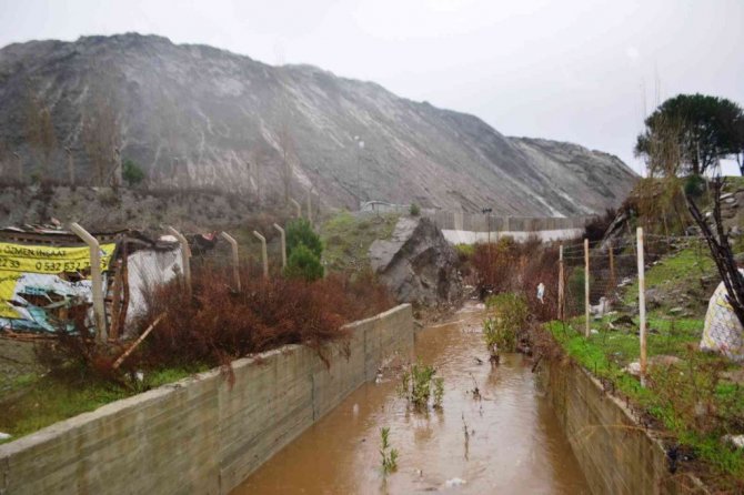 Kuvvetli yağışlar nedeniyle katı atık yığınlarının kütle ağırlığının artması sonucunda, katı atıkların çevreye saçılmasına engel olan istinat duvarı tonlarca ağırlığa dayanamayarak çöktü.