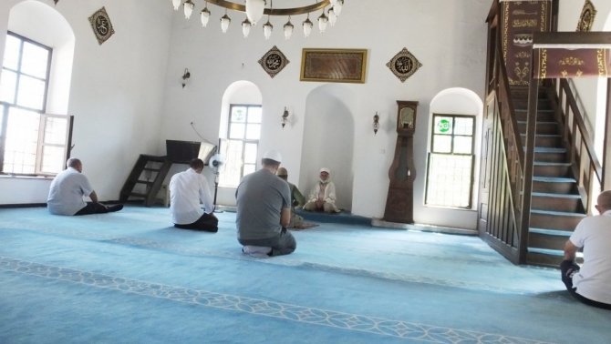 Balıkesir'in Ayvalık ilçesinde, Alibey Adasında, 1898 yılında Osmanlı Padişahı 2. Abdülhamit Han tarafından yaptırılan Hamidiye Caminde namaz kılan...