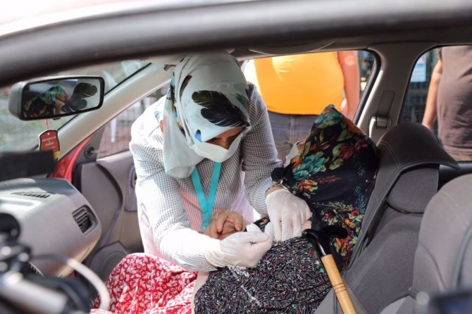 Düzce'de Aziziye Mahallesi'nde kurulan pazaryerinde Sağlık Müdürlüğü tarafından aşılama merkezi kuruldu. Pazaryerine gelerek alışveriş yapanlar aşılama noktasına gelerek aşılarını oldu. Pazaryerinden araç ile geçen ve aşılama merkezini gören 90 yaşındaki Azime Gülaçtı'da aşısını araç içinde oldu. Aşısını yaptıran Azime Nine gençlere, "Ben aşı oldum gençler sizde aşınızı olun" çağrısında bulundu. Merkezi ziyaret eden Vali Cevdet Atay'da, aşılama yapan personellere teşekkürlerini iletirken, son çalışmalar hakkında da basına bilgiler verdi.