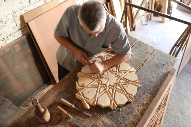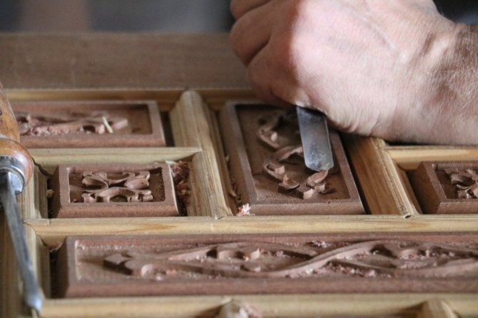 Babasından öğrendiği mesleğini severek yaptığını ifade eden Maraşlıoğlu, "Kahramanmaraş'ta ahşap oymacılık ve kündekari sanatı çalışmalar yapıyoruz. Baba mesleğini yapıyorum ve yaptığımız ürünleri ceviz, meşe, dış budak gibi keresteleri kullanıyoruz. Genellikle 3 metrekare bir kündekari sanatı 600 farklı parçadan meydana geliyor. Kündekari sanatı camilerdeki kürsü ve minberlerde kullanılır. Kündekari yüzlerce parçanın birleşmesi ile meydana geldiği için uzun süre kullanılıyor. Türkiye'nin değişik illerinde cami kürsü ve minberlerinde kullanılıyor. Kündekarinin üzerindeki çizgiler Osmanlı döneminin birebir yapılan ölçüsü ile aynısı ile birebirdir" dedi.