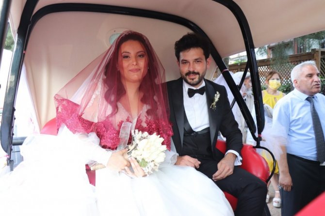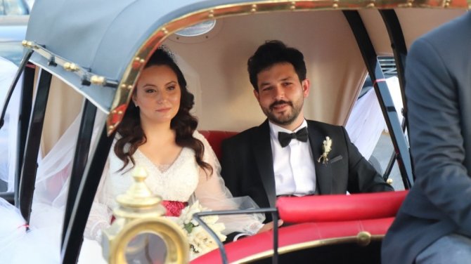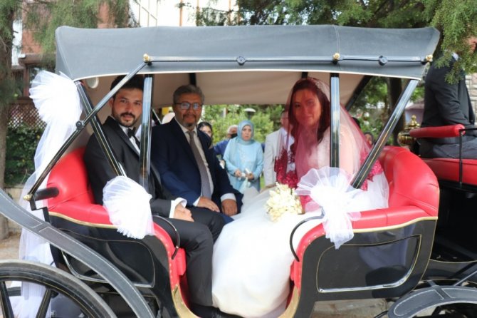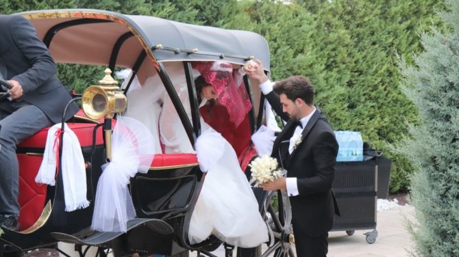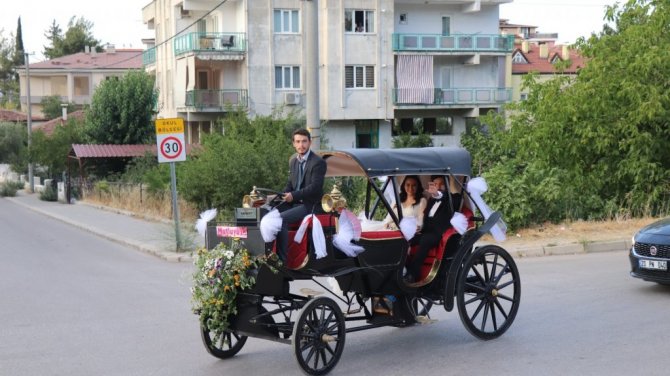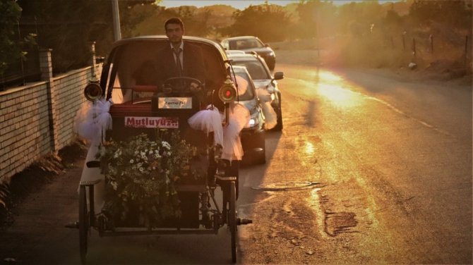 Babasının yaptığı elektrikli faytonla dünya evine girdiler