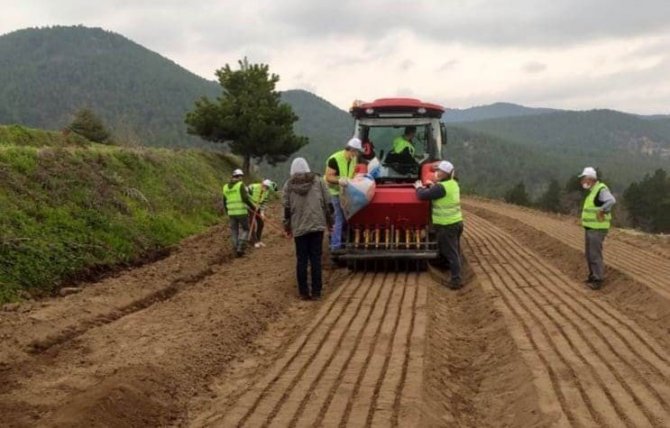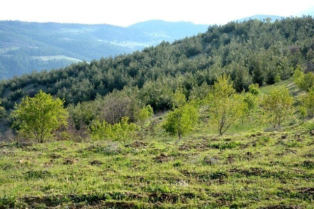 Kütahya Orman Bölge Müdürlüğü tarafından Emet ilçesinde yapılan gelir getirici tür ağaçlandırma çalışmaları kapsamında dikilen badem fidanları hayata tutunarak, bölge ekonomisine katkı sağlamaya hazırlanıyor.
