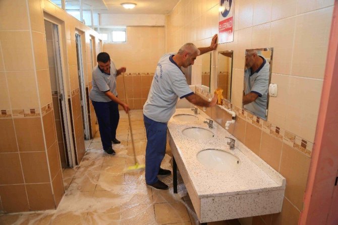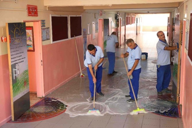 Çevre Koruma ve Kontrol Müdürlüğüne bağlı ekipler okullarda öğrencilerin okul içinde adım attığı her yeri dip köşe temizliyor. Hijyene önem veren ekipler, sınıf ve koridorları önce süpürüyor ardından da köpüklü suyla yıkıyor. Son olarak da ilaçlama yaparak eğitim yuvalarını temiz ve güvenli hale getiriyor.
