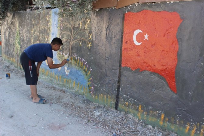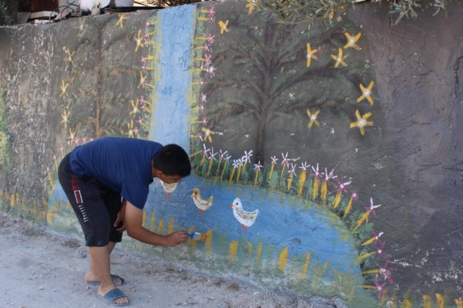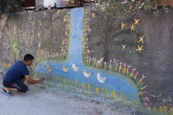 Bahçe duvarları tuvali oldu