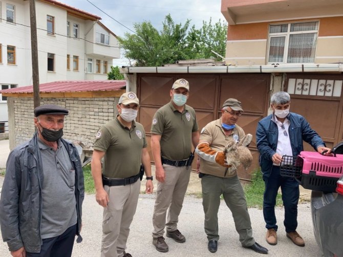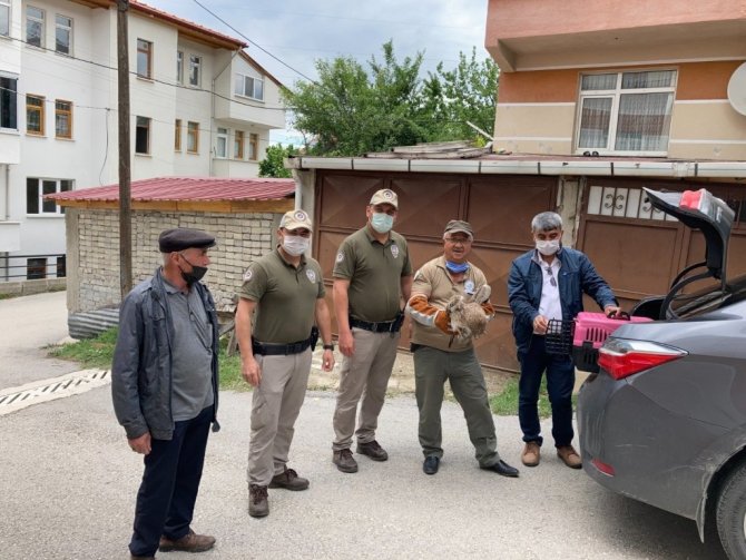 Kastamonu'da bir evin bahçesinde yaralı halde bulunan doğan, ekipler tarafından korumaya alındı.