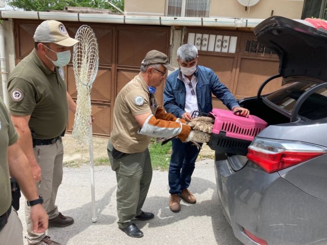 Bahçede yaralı halde bulunan doğan, korumaya alındı