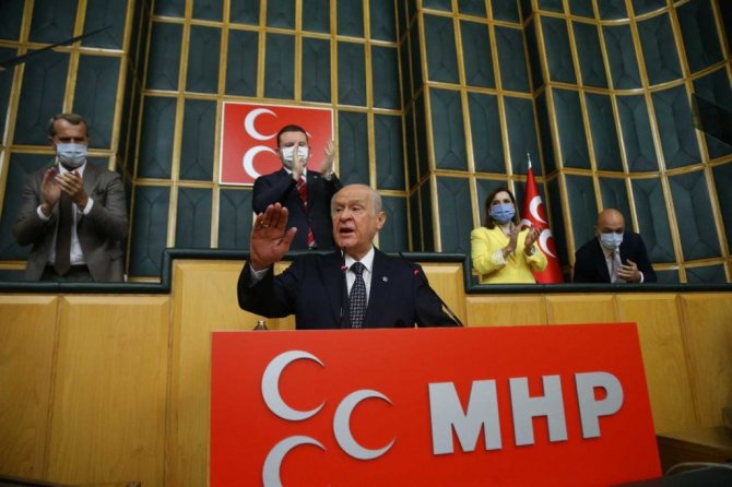 Türkiye'de herhangi bir şekilde Kürt sorunu bulunmadığına dikkat çeken Bahçeli, "Binlerce yıllık insanlık tarihinin, yüzlerce yıllık milletler mücadelesinin, millet olmanın inceliklerine nüfuz edebilmiş yüksek bir fikriyatın, derin bir duyuşun ve milli tarihe vakıf olmanın eseri ve neticesidir. Bunlar benim şahsi fikrim değil, bin yıllık millet varlığının bu topraklarda tutunmak için, kanla, gözyaşıyla, çileyle bugüne aktardıkları stratejik mirasıdır. Türkiye'de Kürt sorunu yoktur, Kürt kardeşlerimi sorun olarak gören CHP vardır, İP vardır, HDP vardır, köşesiz köşe yazarları vardır, karanlığın teşrifatçısı satılmış aydınlar vardır" değerlendirmesinde bulundu.