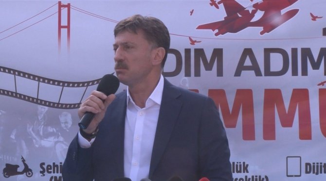 Açılış töreninde konuşan Bahçelievler Belediye Başkanı Hakan Bahadır, "Şu anda biz 2021 yılının bu temmuzunda, bu sıcakta burada Suriye gibi, Irak gibi bütün dünyayı dizayn etmek isteyen o güçlerin, o FETÖ ekibinin, ona emir verenlere karşı dik duran sayın Cumhurbaşkanımız Recep Tayyip Erdoğan sayesinde rahatlıkla duruyoruz. Sadece burada durmuyoruz arkadaşlar. İstiklal Savaşı'nın bence ikincisi, Türkiye Cumhuriyeti'nin bence devamı, biz burada durduğumuz gibi ticaretimizi rahat yapıyoruz. Siyasetimizi, her partiden rahat yapıyor. Pandemi vardı, sinemalar, tiyatrolar kapalıydı, şimdi hepsi açıldı. Rahat bir şekilde kafeye gidebiliyorsak, yemek yiyebiliyorsak, yüzebiliyorsak, rahat hareket edebiliyorsak, memleketimize gidebiliyorsak işte o gece dik duran cumhurbaşkanımızın sayesinde. Allah ömrüne ömür katsın. O gece biliyorsunuz tanklar yürümeye başladı, önlerinde duran arkadaşlar var, onlardan da Allah razı olsun. Bizler de acizane burada şehitlerimizin, sizlerin yazdığı destan gibi bizlere düşen bir vazife olarak, Bahçelievler'deki her siyasi partiden, her düşünceden, her mezhepten, her şehirden arkadaşımızla ilçemizi savunduk. Bir emniyet müdürlüğümüz var, 3 tane karakolumuz var, onlara bölüştük ve yaklaşık bin tane arkadaşımız, vatandaşımız Bahçelievler'e o darbe girişimcilerinin gelmesini engelledi. Ayrıca havalimanı yakın olduğu için buradan çok arkadaşımız havalimanına gitti" diye konuştu.