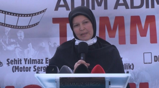 Açılışta konuşma yapan şehit İlhan Varank'ın ablası ve 15 Temmuz Derneği Yönetim Kurulu Üyesi Ayşe Arslantürk, "Herkesin o günü, o gecesi, o anı var. Gözlerimizle görüp zihnimize kazıdığımız fotoğraflar var. Bizzat yaşadığımız, ömür boyu hatırasını devam ettireceğimiz, saklayacağımız yaşanmışlıklarımız var. Bir kısmımızda gazilerimizde olduğu gibi ömür boyu o günün izlerini vücutlarında taşıyor olacaklar, belki eksikliğini. Bir de simgesel o günün izini taşıyan motosiklet gibi, derneğimizde araçlarımız var. Unutmayacağız, unutturmayacağız dedik ya, bu araçlar ve o geceye ait fotoğraflar çok uzun süre hafızamızda canlı kalmasına sebep oluyor. Dün Bursa'daydık, bugün Bahçelievler'deyiz. Buradaki araçlar kesinlikle film için, senaryo gereği hazırlanmış araçlar değiller. Gerçekler, hatıralarımız, anlattığımız her şey gerçek. O yüzden çok önemli bir sergi" diye konuştu.