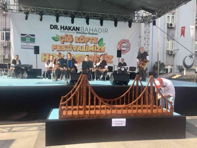 Bahçelievler'de düzenlenen Çiğ Köfte Festival'inde 15 bin vatandaşa 3 ton çiğ köfte dağıtılırken, Latif Doğan müzik ziyafeti yaşattı. Çiğ köfteden yapılan Çanakkale Köprüsü maketi ise büyük ilgi gördü.