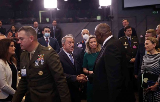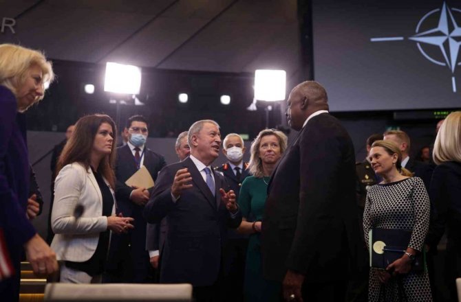 Milli Savunma Bakanı Hulusi Akar, NATO Savunma Bakanları Olağanüstü Toplantısı'na katılmak üzere geldiği Belçika'nın başkenti Brüksel'deki NATO Karargahı'nda ikili görüşmelerine devam ediyor. Bakan Akar ikili temasları kapsamında, ABD Savunma Bakanı Lloyd James Austin ile bir araya geldi.