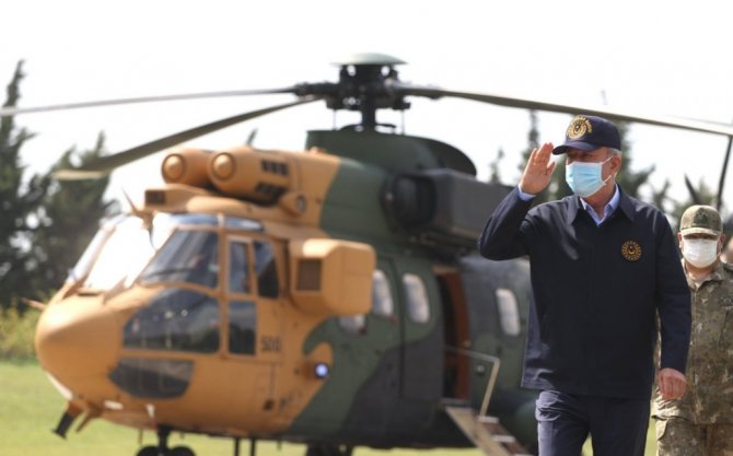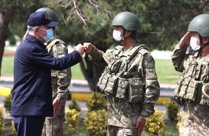 Beraberindeki TSK Komuta kademesi ile inceleme ve denetlemelerini sürdüren Milli Savunma Bakanı Hulusi Akar ve komutanlar, 5'inci Kolordu Komutanlığını ziyaret ederek faaliyetlere ilişkin bilgi aldı ve talimatlar verdi.