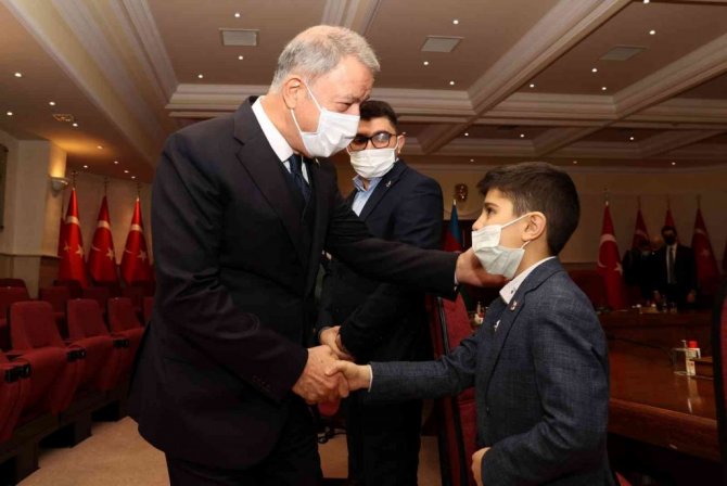 Türkiye'de eğitimlerine devam Vatan Muharebesi şehitlerinin çocuklarından Anar İbrahimli, Shabnem Gubatova ile Vatan Muhaberesi Gazisi Aykhan Movsumov ve Azerbaycan'ın Ankara Büyükelçisi Reşad Mammadov'un da katıldığı buluşmada konuşan Akar, bir araya gelmekten duyduğu memnuniyeti ifade ederek sözlerine başladı.