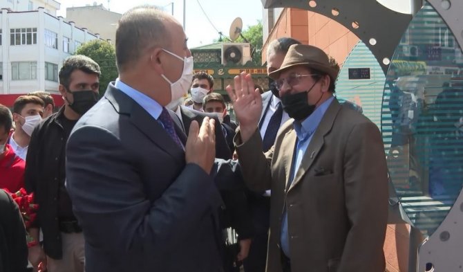 Huzurevinde yaşayan ve ayakkabı boyacılığı yapan 75 yaşındaki amcayla da sohbet eden Bakan Çavuşoğlu, "Orada kalan tüm büyüklerimize selam söyleyin" ifadelerini kullandı.