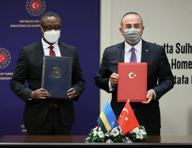 Biruta ile yapılan görüşmelerde Türkiye ve Ruanda arasındaki ilişkilerin tüm boyutlarıyla ele alındığını belirten Bakan Çavuşoğlu, "Siyasi ilişkilerimiz iyi, ekonomik ilişkilerimizde kat etmemiz gereken mesafeler var. İkili ticaret hacmimiz hala istediğimiz seviyede değil. Geçen sene 81 milyon dolar civarındaydı. 2019'a göre bir artış var salgına rağmen fakat iş insanlarımız, firmalarımızın Ruanda'daki yatırım miktarına baktığımız zaman 400 milyon doları buluyor. Şu anda Ruanda firmalarımız için önemli fırsatlar sunuyor. Firmalarımızın da ilgi gösterdiğini görüyoruz" dedi.