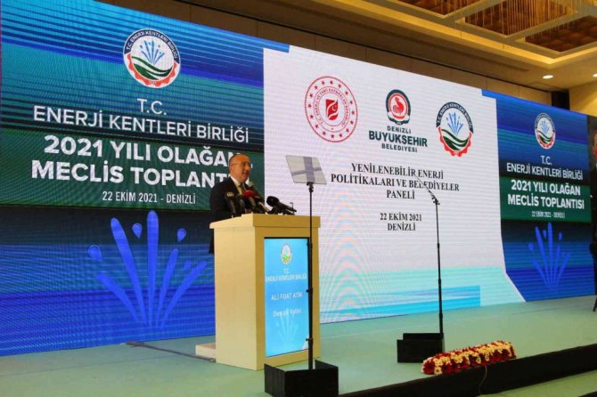 Enerji Kentleri Birliği 2021 Olağan Meclis Toplantısı Enerji ve Tabii Kaynaklar Bakanı Fatih Dönmez, Denizli Valisi Ali Fuat Atik ve 150'ye yakın üye belediye başkanın katılımıyla Denizli'de gerçekleşti. Meclis toplantısında konuşan Enerji ve Tabii Kaynaklar Bakanı Fatih Dönmez, Dünya'nın bir enerji darboğazından geçtiğini belirtti. Enerji fiyatlarının son 1 yıl içerisinde yaklaşık yüzde 300'lere varan oranlarda arttığını belirten Bakan Dönmez, "Dünya yerli ve milli kaynaklar yaşanan bu şok dalgasına karşı adeta bir paratoner görevi üstleniyor. Çünkü konjonktürel gelişmeler uluslararası piyasalarda enerji fiyatlarında ralli yaşanmasına neden olurken, bunun etkisini en az derecede hisseden ülkeler yerli ve milli kaynaklara daha fazla yaslanan ülkeler olacak. Türkiye, bu konuda son zamanlarda çok büyük bir mesafe kat etti. Yenilenebilir enerji kaynaklarına dayalı kurulu gücümüz bugün yüzde 53 seviyelerinde. Bu oran son 19 yılda 4,5 kat artış gösterdi. Diğer yerli kaynaklarla birlikte yerli ve yenilenebilir enerjiye dayalı kurulu gücümüz yüzde 65 seviyelerinde" dedi.