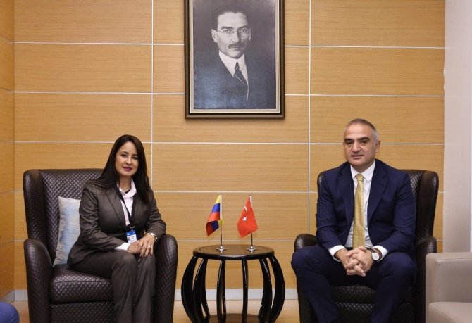 Bakan Ersoy’un ilk olarak ağırladığı Venezuela Turizm Bakanı Stella Marina Lugo, Cumhurbaşkanı Recep Tayyip Erdoğan’ın Latin Amerika turuna dikkati çekerek, “Biz de ülkemizde Cumhurbaşkanınız Sayın Erdoğan’ı ağırlıyoruz. Bu nedenle biz de ekip olarak ikiye bölündük, ben ve heyetim konferansa ucu ucuna yetiştik” ifadelerini kullandı.
