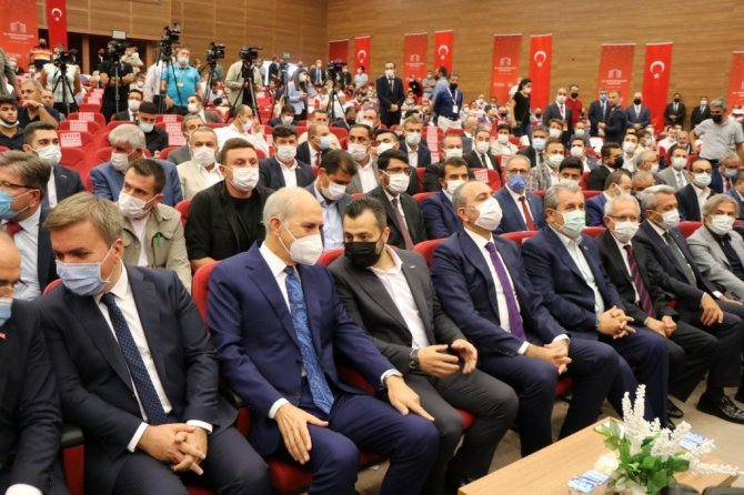 Protokol konuşmalarının ardından AK Parti Genel Başkanvekili Prof. Dr. Numan Kurtulmuş, "Küresel kaostan çıkış için adalet ve merhamet" konulu konferansını verdi. Konferansına imam hatiplerde geçmişte yaşanan sıkıntılarda bahsederek başlayan Kurtulmuş, "Türkiye'de zaman zaman imam hatip okulları üzerinde baskılar oldu. Çok şükür bunların hepsini aşarak geldik. Kat sayı meselesini hallettik. Türkiye'de başörtüleri ile imam hap liselerine giremeyen öğrenci meselesini hallettik. Bir tane imam hatiplinin herhangi bir bürokrasiye gelmesi mümkün değil iken bugün Allah'a çok şükür imam hatipli birisi Türkiye'nin Cumhurbaşkanı oldu. Bu ihlaslı çalışmaların bir sonucudur. Allah'a çok şükür başörtüsü konusunda da tüm kapılar açıldı. Şimdi her yerde, üniversitelerde, mahkemelerde, hakim olarak, savcı olarak, poliste. Biz bu ülkede başörtülü, başı açık, şu görüşten, bu görüşten, şu hayat tarzını benimseyen, bu hayat tarzını benimseyen bütün vatandaşlarımızın eşit ve özgür vatandaşlar olarak geleceğin Türkiye'sini kucaklayacağını ve canla başla gayretle bu yolda yürüyeceğine inanıyoruz" ifadelerini kullandı.