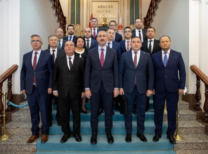 Bakan Gül, Türkiye Adalet Akademisi koordinatörlüğünde "Türk Konseyi Yargı Akademileri Birliği Birinci Toplantısı'na katılmak üzere Ankara'ya gelen Azerbaycan, Özbekistan, Kazakistan ve Kırgızistan yargı eğitim kuruluşları temsilcilerini makamında kabul etti. Görüşmeye Azerbaycan Cumhuriyeti Adalet Bakanlığı Adalet Akademisi Rektörü Elçin Halefovş, Azerbaycan Cumhuriyet Başsavcılığı Bilim-Eğitim Merkezi Reisi Mübariz Ahmedov, Kazakistan Cumhuriyeti Yüksek Mahkemesi Adalet Akademisi Uluslararası İlişkiler Bölüm Başkanı Shakir Shayakhmetov, Kırgızistan Cumhuriyeti Yüksek Mahkemesi Yargı Eğitim Merkezi Müdürü Baytikova Elmira, Kırgızistan Cumhuriyet Başsavcılığı Savcı ve Müfettiş Eğitim Merkezi Müdürü Azamat Moldobaev, Özbekistan Cumhuriyeti Yüksek Yargı Konseyi Hakimlik Okulu Müdür Yardımcısı Dr. Komil Sindarov, Özbekistan Cumhuriyet Başsavcılığı Akademisi Başkan Yardımcısı Muzaffarjon Musajanovich Mamasiddikov, Özbekistan Cumhuriyeti Ankara Büyükelçiliği Müsteşarı Bahadır B. Nazarov, Özbekistan Cumhuriyeti Başsavcılığı Uluslararası Hukuk Bölüm Başkan Yardımcısı Nazım Khodjayev, Türk Konseyi Genel Sekreter Yardımcısı Mirvokhid Azimov katıldı. Bakan Gül, görüşmede yargı mensuplarının eğitim alanında en iyi uygulama örneklerinin ve araştırmaların paylaşılarak, kurumlar arasındaki işbirliğinin tesis edilmesi ile hukukun üstünlüğünü sağlayacak mekanizmaların geliştirilmesi amacıyla kurulan birliğe çalışmalarında başarılar diledi.